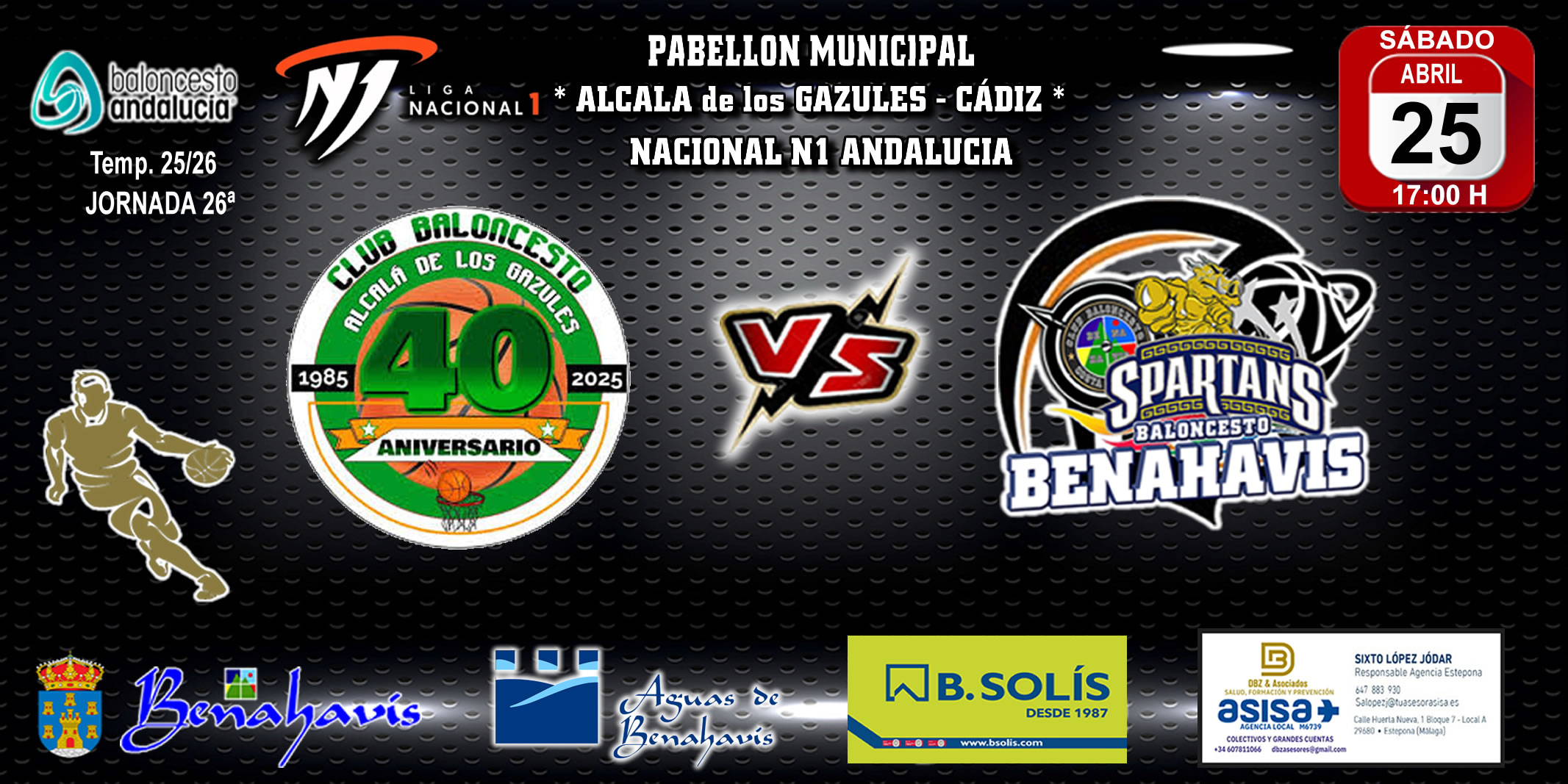 CB BENAHAVIS COSTA DEL SOL vs CB BENALMÁDENA Sábado 18 de abril de 2026, 19:00hPabellón..