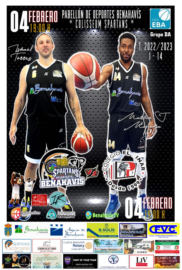 Gran tarde basket la que se espera, en el que el Club Baloncesto Benahavís Costa del Sol juega de nuevo en su pabellón, este sábado 4 de febrero de 2023, para disputar en el “Colisseum Spartans”, la Jornada 14ª de Liga EBA Grupo D-A, donde se enfrentará, a partir de las 19:00 horas, en derbi provincial, al 3er clasificado, el “CD COLEGIO EL PINAR» (Alhaurin de la Torre – Málaga).