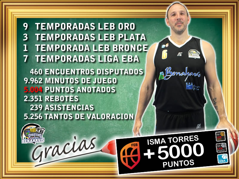 La Directiva del Club Baloncesto Benahavis Costa del Sol quiso rendir el pasado sábado 18 de febrero 2023, previo al encuentro de la jornada 16ª, un merecido homenaje a su jugador Ismael Torres Aguilar, natural de Adra (Almería), en reconocimiento a toda su trayectoria deportiva, al superar los 5.000 puntos en Ligas FEB (Leb Oro, Leb Plata, Leb Bronce y Liga EBA), en toda su dilatada y extensa carrera deportiva: