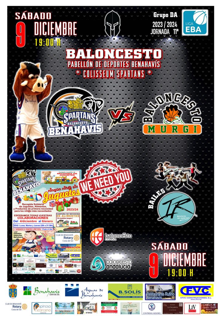 Importante partido, ultimo como local del mes diciembre, el que se espera este sábado, en el que el Club Baloncesto Benahavís Costa del Sol regresa a su pabellón, este próximo sábado 9 de diciembre de 2023, para disputar en el “Colisseum Spartans”, la Jornada 11ª de Liga EBA Grupo D-A, donde se enfrentará, a partir de las 19:00 horas, al equipo de “BALONCESTO MURGI” de El Ejido (Almería).