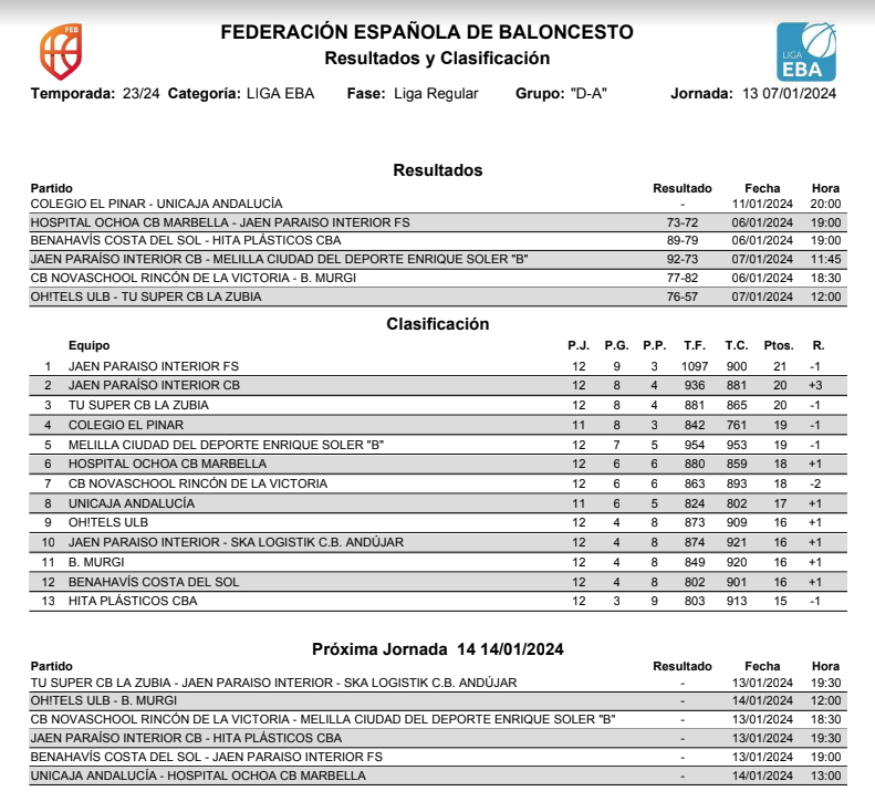 🚨⛹🏀 CRONICA | EBA (DA) T23/24 | J13ª | CB BENAHAVÍS COSTA DEL SOL vs HITA PLASTICOS CBA ARMILLA (GRANADA)