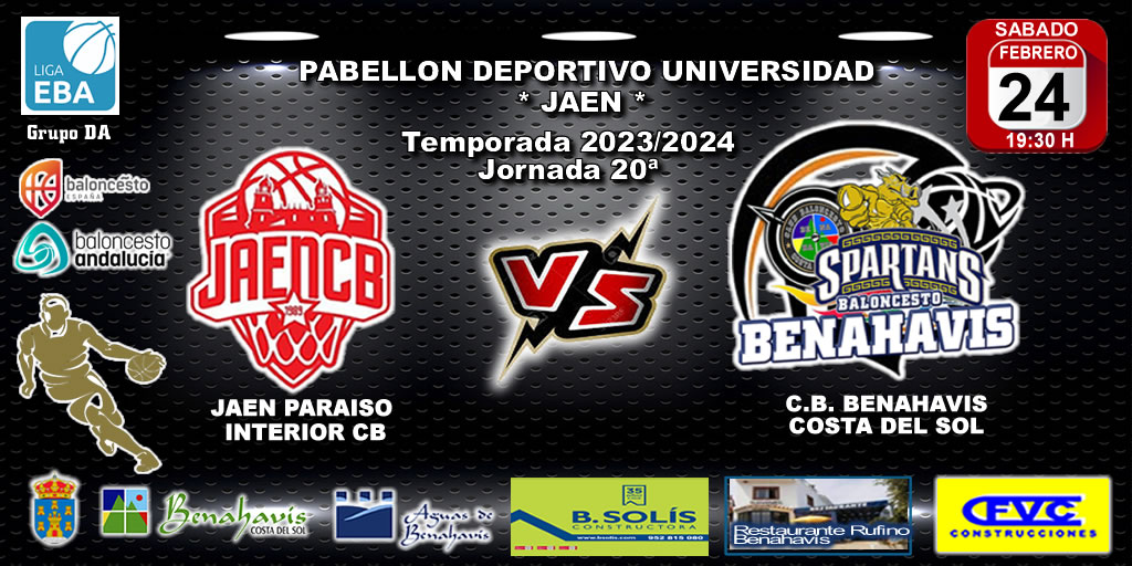 El Club Baloncesto Benahavís Costa del Sol se desplazará a la capital jienense, el sábado 24 de febrero de 2024, para disputar en el Pabellón Deportivo Universidad de Jaén, la Jornada 20ª de la Liga EBA Grupo DA, donde se enfrentará a partir de las 19:30 horas, al equipo de “JAÉN PARAÍSO INTERIOR CB”.