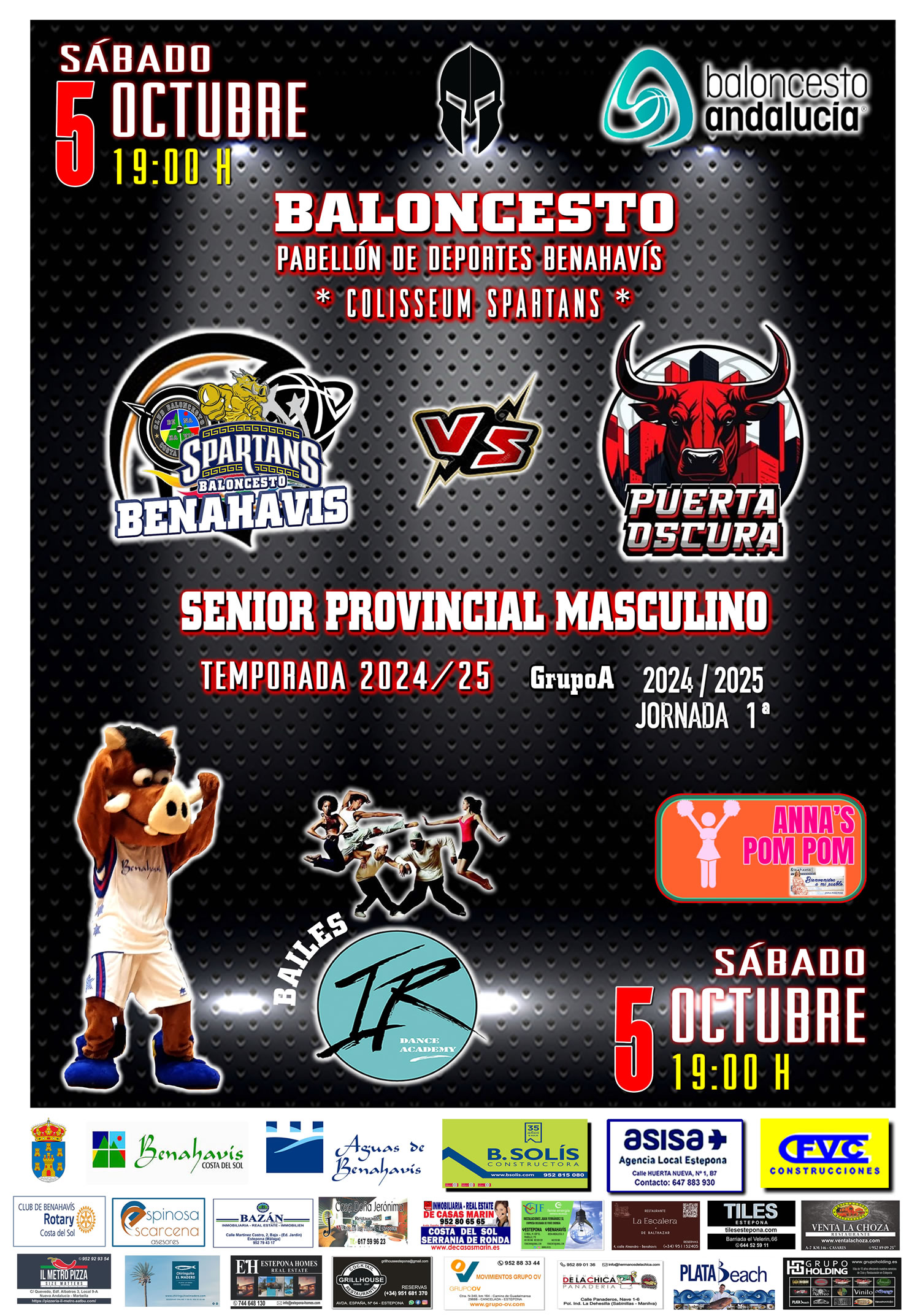 Encuentro importante, el primero como local de la temporada 24/25, el que se espera esta jornada, en el que el Club Baloncesto Benahavís Costa del Sol se estrena en su pabellón, este próximo sábado 5 de octubre de 2024, para disputar en el “Colisseum Spartans”, la Jornada 1ª de Liga Senior Provincial Masculina, Grupo A, donde se enfrentará, a partir de las 19:00 horas, al equipo de » I LOVE PIZZA CD PUERTA OSCURA» de Málaga.