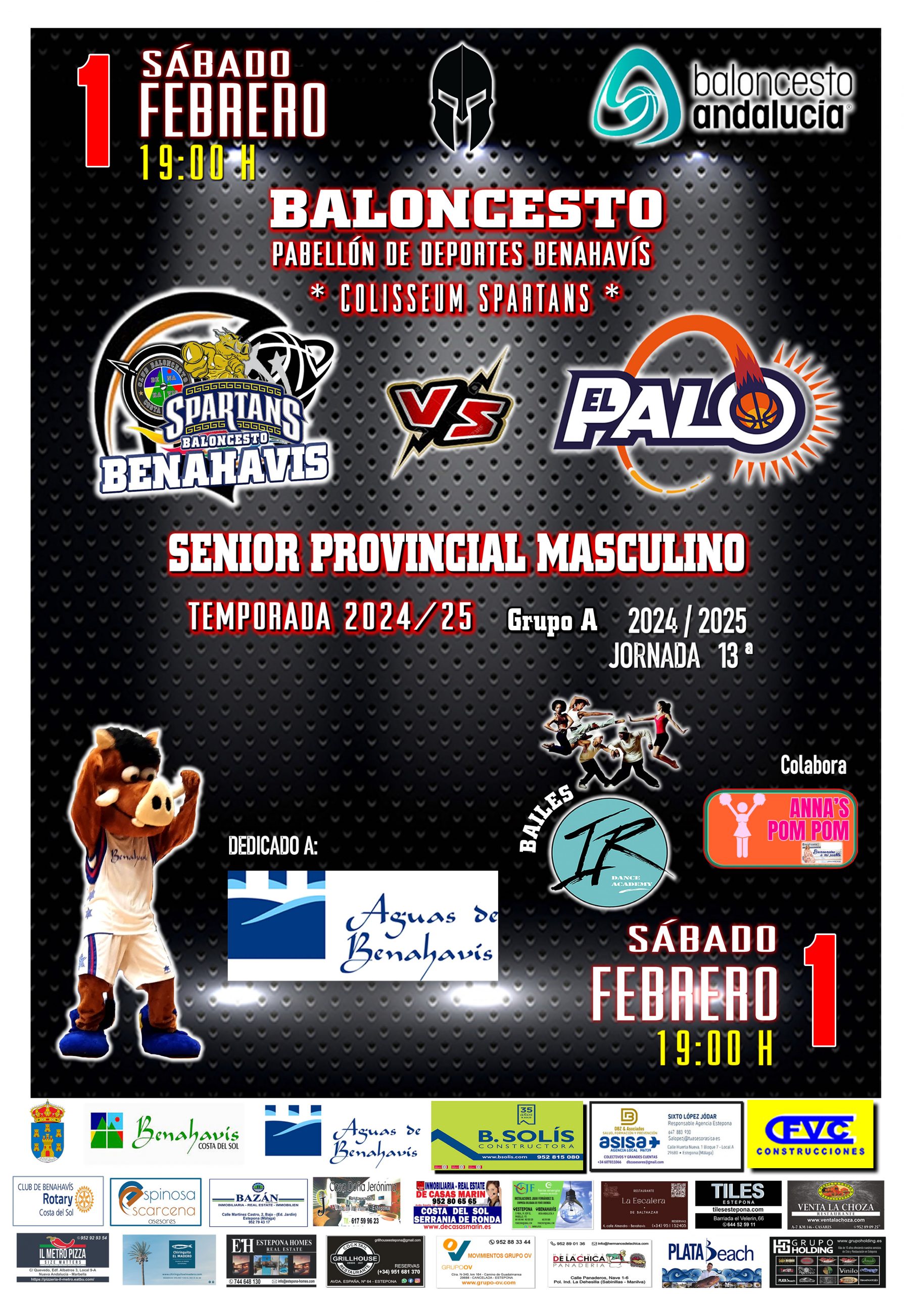 El Club Baloncesto Benahavís Costa del Sol juega de nuevo como local, este segundo encuentro de la 2ª vuelta de competición. Será el próximo sábado 1 de febrero de 2025, para disputar en el “Colisseum Spartans”, la Jornada 13ª de Liga Senior Provincial FAB Málaga, donde se enfrentará, a partir de las 19:00 horas al equipo de “CB EL PALO MALAGA”.