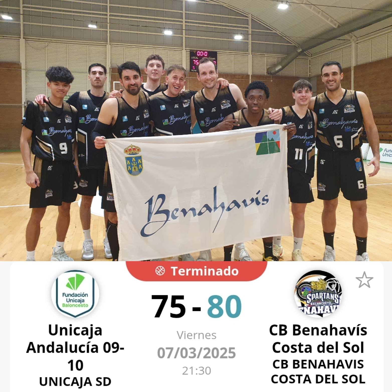 !! GRANDES !! Suman y siguen nuestros Spartans de Benahavis para alcanzar su objetivo de la temp.24/25. Gran victoria la conseguida en la siempre difícil cancha de Los Guindos de Málaga frente al Unicaja Andalucía por 75 a 80.