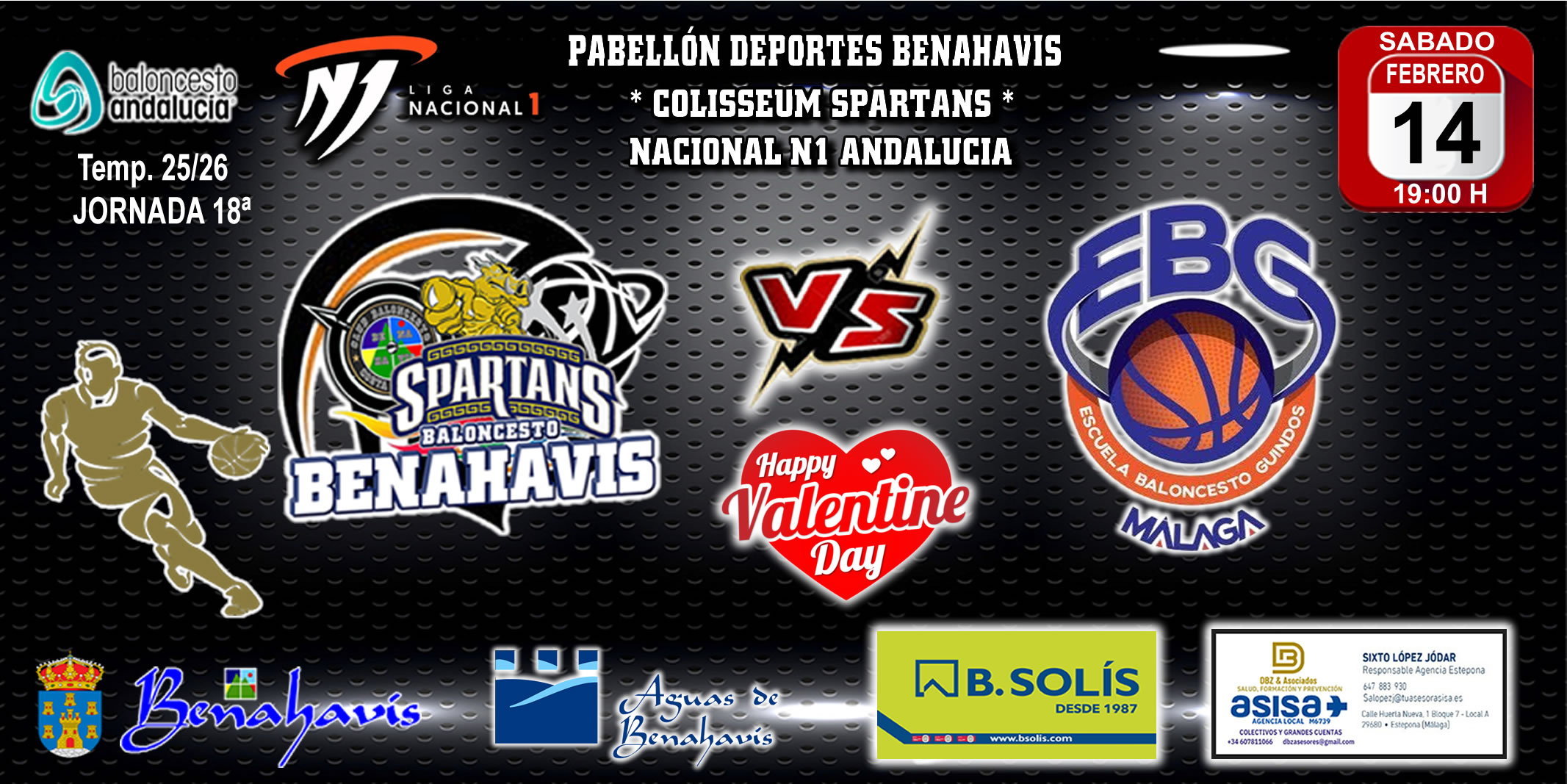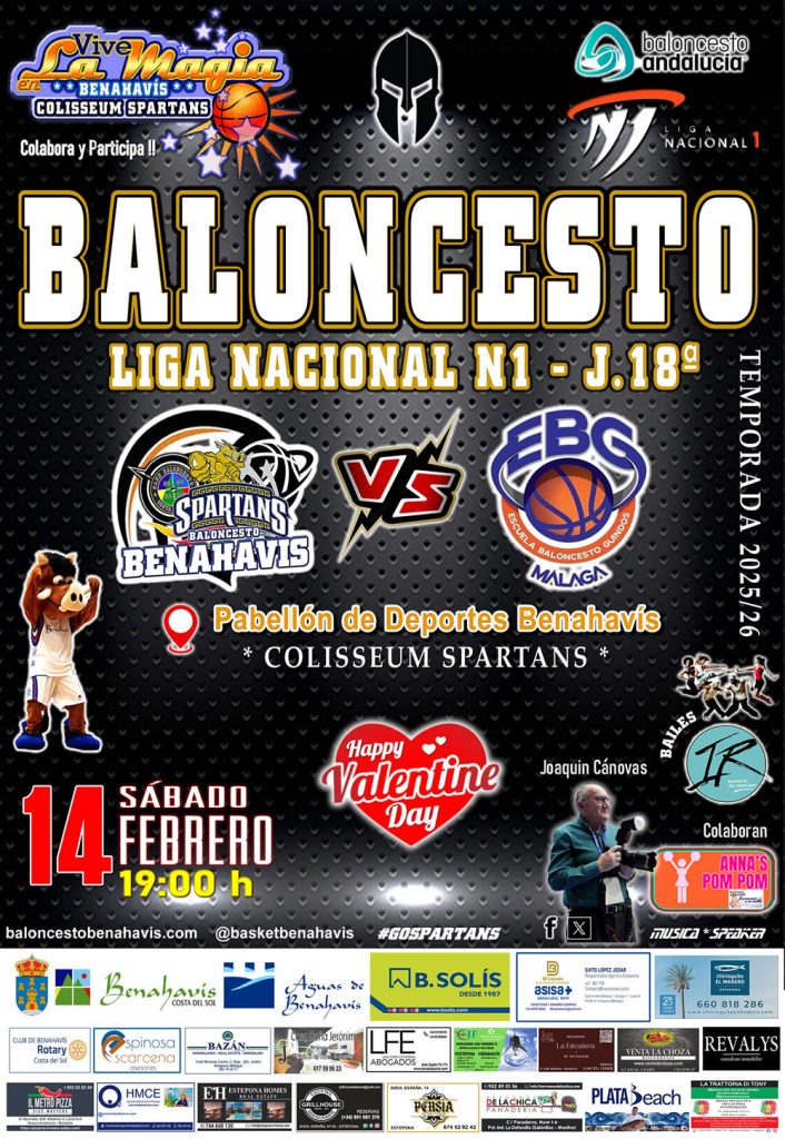 Se disputará en el pabellón «Colisseum Spartans», este sábado 14 de febrero de 2026, a partir de las 19:00 horas, y se enfrentarán al equipo malagueño del «EBG MALAGA».