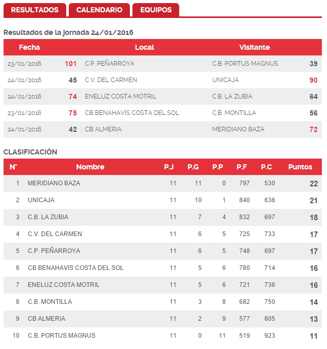 Con los once primeros encuentros disputados hasta el momento, el CB Benahavís Costa del Sol permanece situado en la 6ª posición provisional de la clasificación de su grupo A de 1ª División Nacional, zona de permanencia.