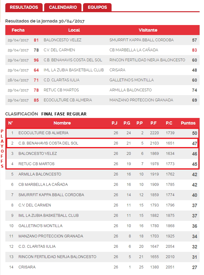 Con este resultado el equipo de CB Benahavís Costa del Sol consigue el segundo lugar definitivo de la tabla, que le permite obtener el “factor cancha” en los cruces de Playoffs.