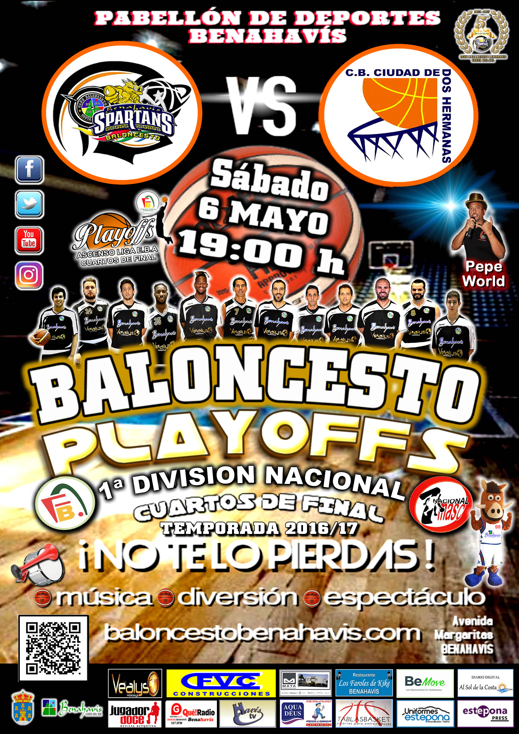 El primer encuentro de los PlayOffs de Ascenso a la Liga EBA se disputará en el Pabellón Municipal de Deportes de Benahavís (Avda. de Las Margaritas, s/n), el próximo sábado 6 de Mayo de 2017, a las 19:00 horas, con ENTRADA GRATUITA para todos los asistentes.