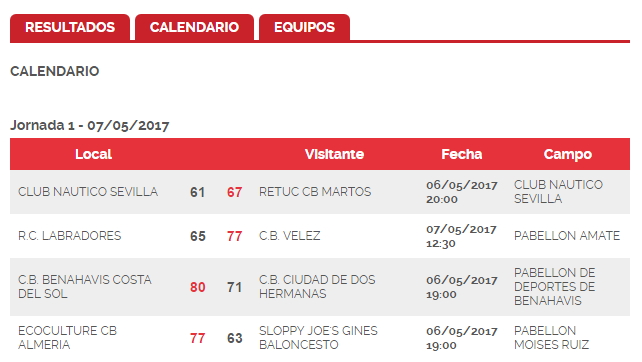 RC Labradores Sevilla vs Baloncesto Vélez………….. (65 – 77)