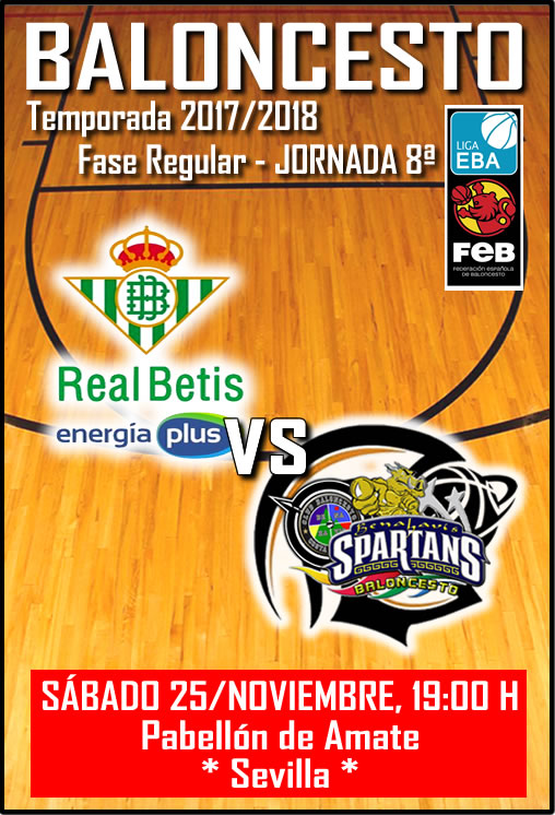 El Club Baloncesto Benahavís Costa del Sol se desplazará este sábado 25 de noviembre 2017, a la capital sevillana, para disputar en el Pabellón de Amate, la jornada 8ª de la Liga EBA Grupo D-B, donde se enfrentará a las 19:00 horas, al equipo de “Real Betis Energía Plus«, filial del equipo de ACB.