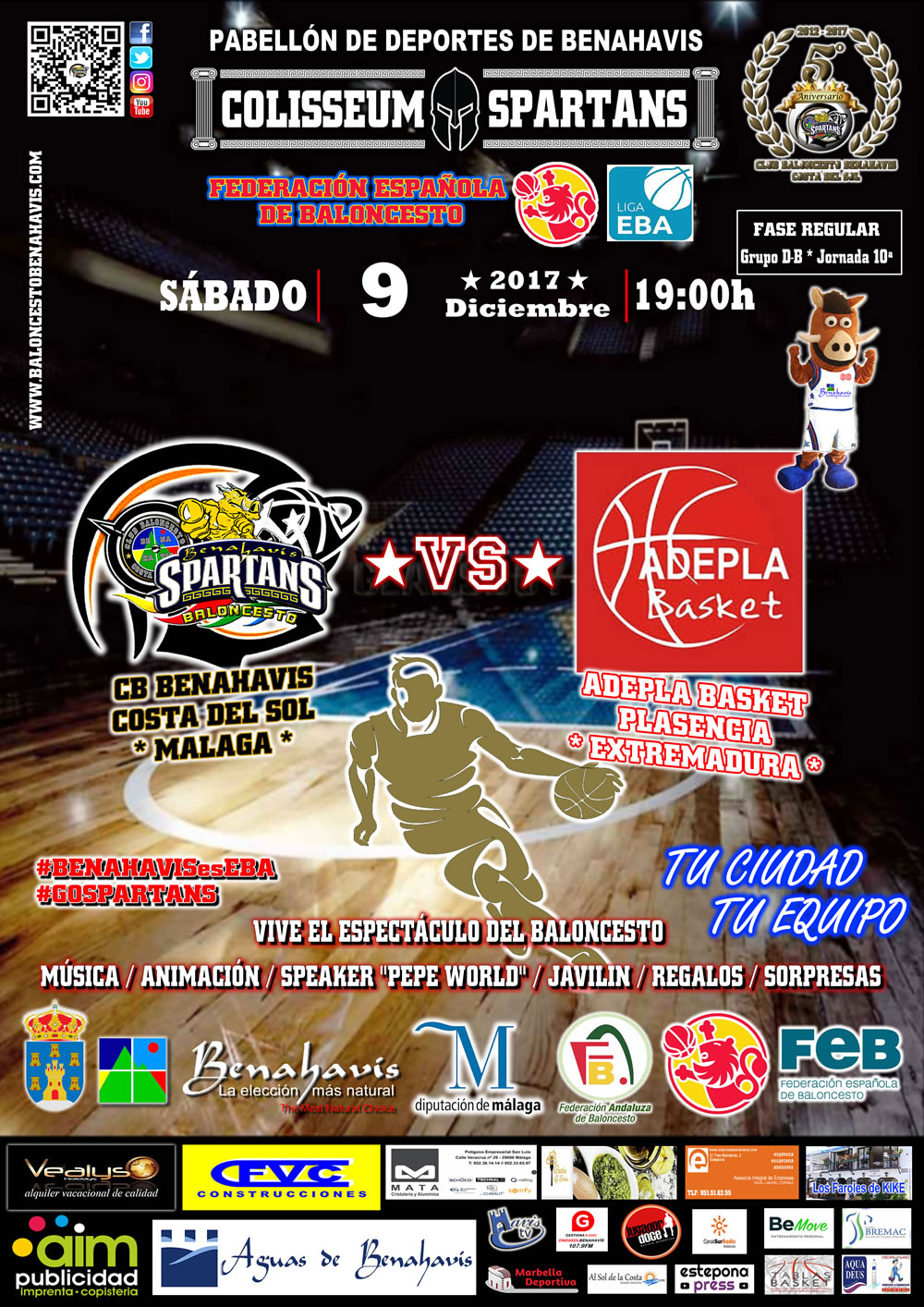 El encuentro de esta 10ª jornada de Liga EBA (D-B) se disputará en el Pabellón Municipal de Deportes de Benahavís (Avda. de Las Margaritas, s/n), este sábado 9 de Diciembre 2017, a las 19:00 horas, con ENTRADA GRATUITA para todos los asistentes.