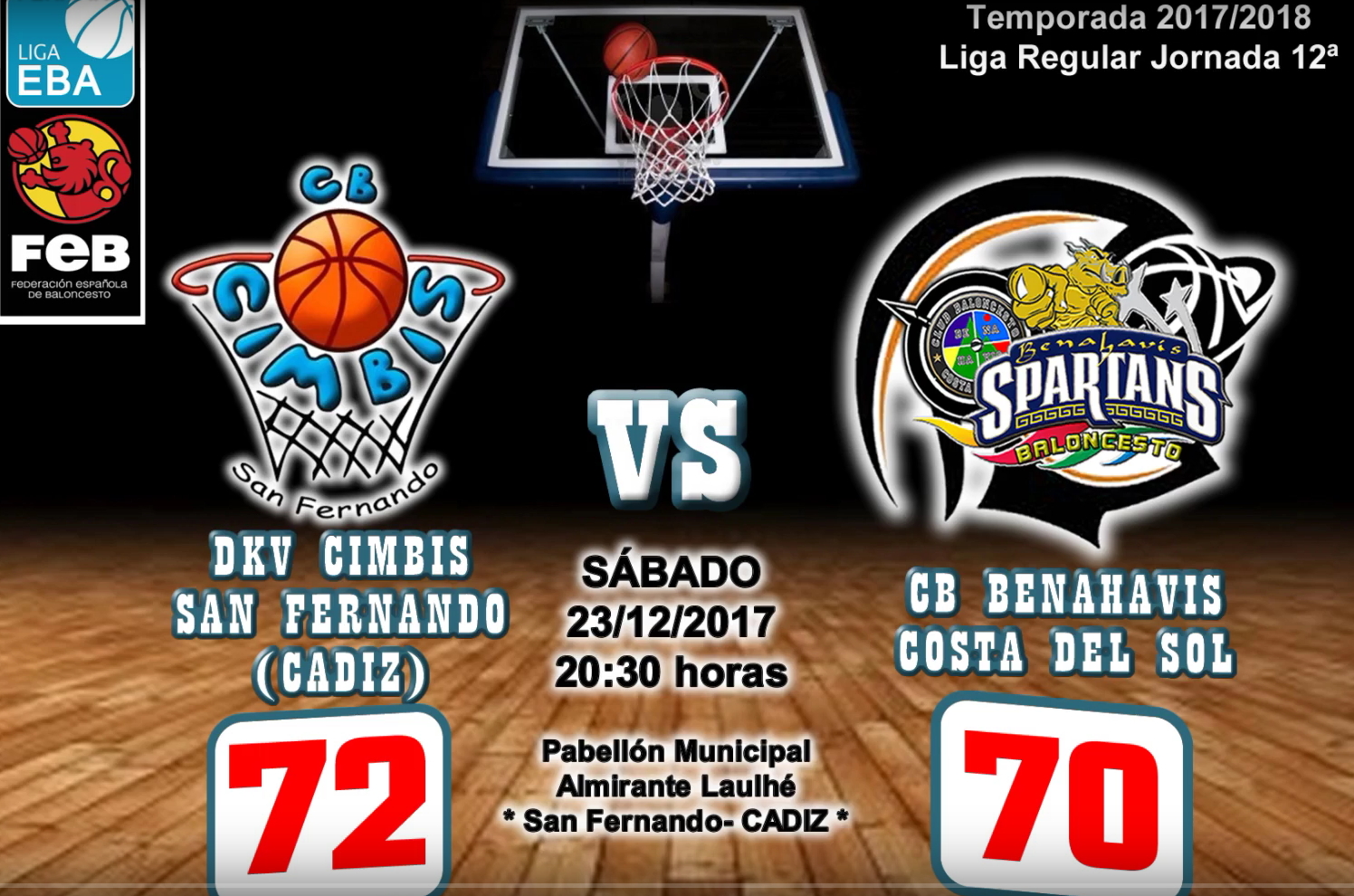 El pasado 23 de diciembre, los Spartans se desplazaban a la ciudad de San Fernando (Cádiz), para disputar en el pabellón Almirante Laulhé, a las 20:30h, la jornada 12ª de liga EBA frente al DKV Cimbis.