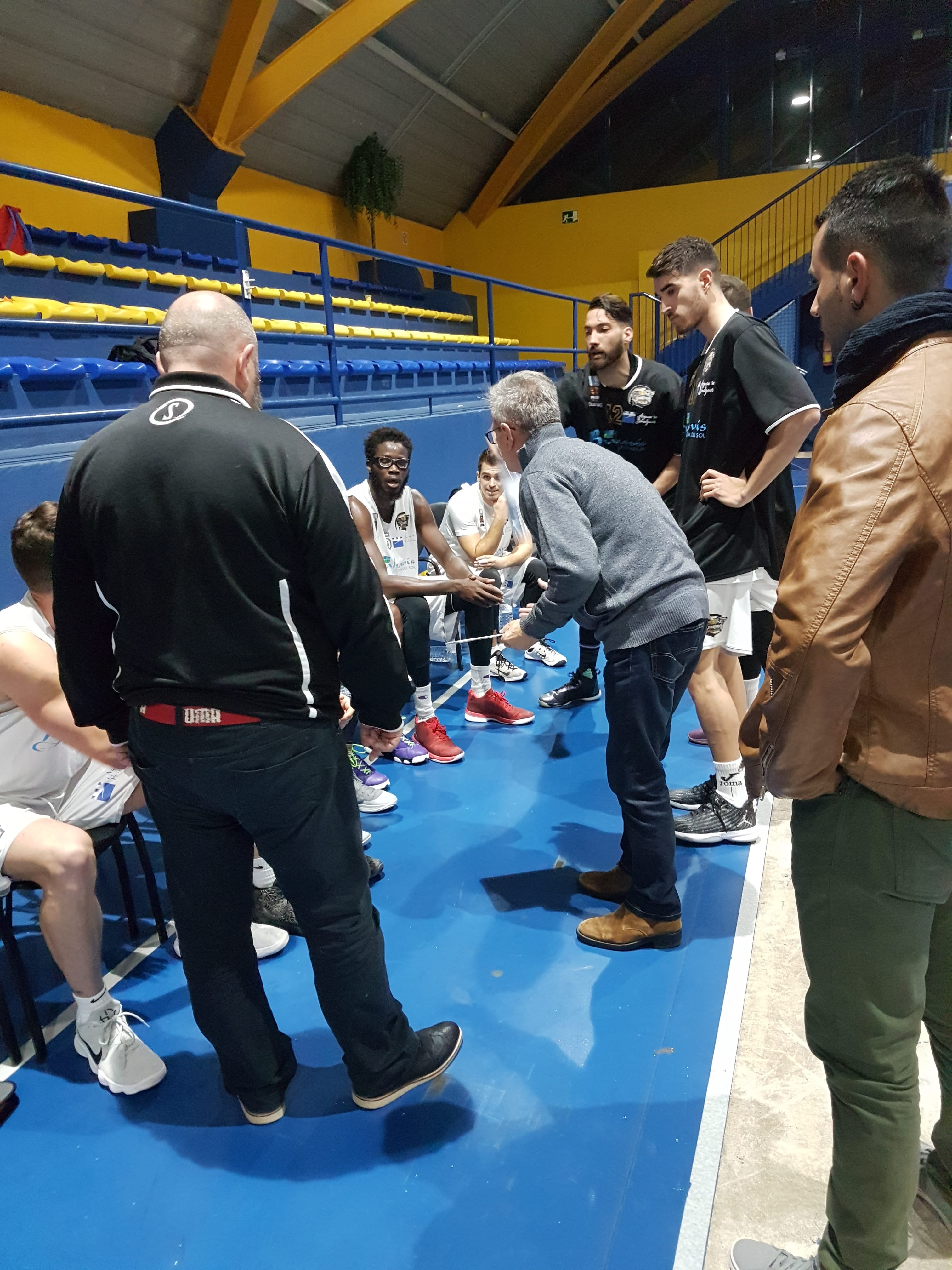 Paso por los vestuarios para dar las consignas para continuar muy concentrados en defensa, ya que la diferencia en las rotaciones y altura era notable, y frenar en lo posible los lanzamientos de los escoltas y aleros de Novaschool.