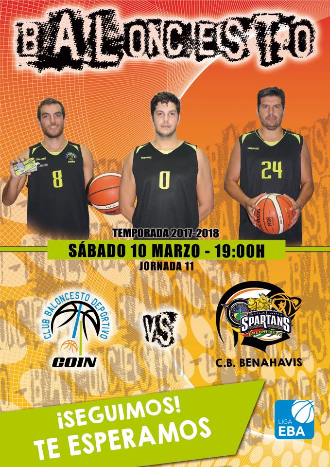 El Club Baloncesto Benahavís Costa del Sol se desplaza este sábado 10 de marzo 2018, a la localidad de Coin, para disputar en el Polideportivo Municipal, la jornada 11ª de la Liga EBA Grupo D-Permanencia, donde se enfrentará a las 19:00 horas, al «CB DEPORTIVO COIN“.