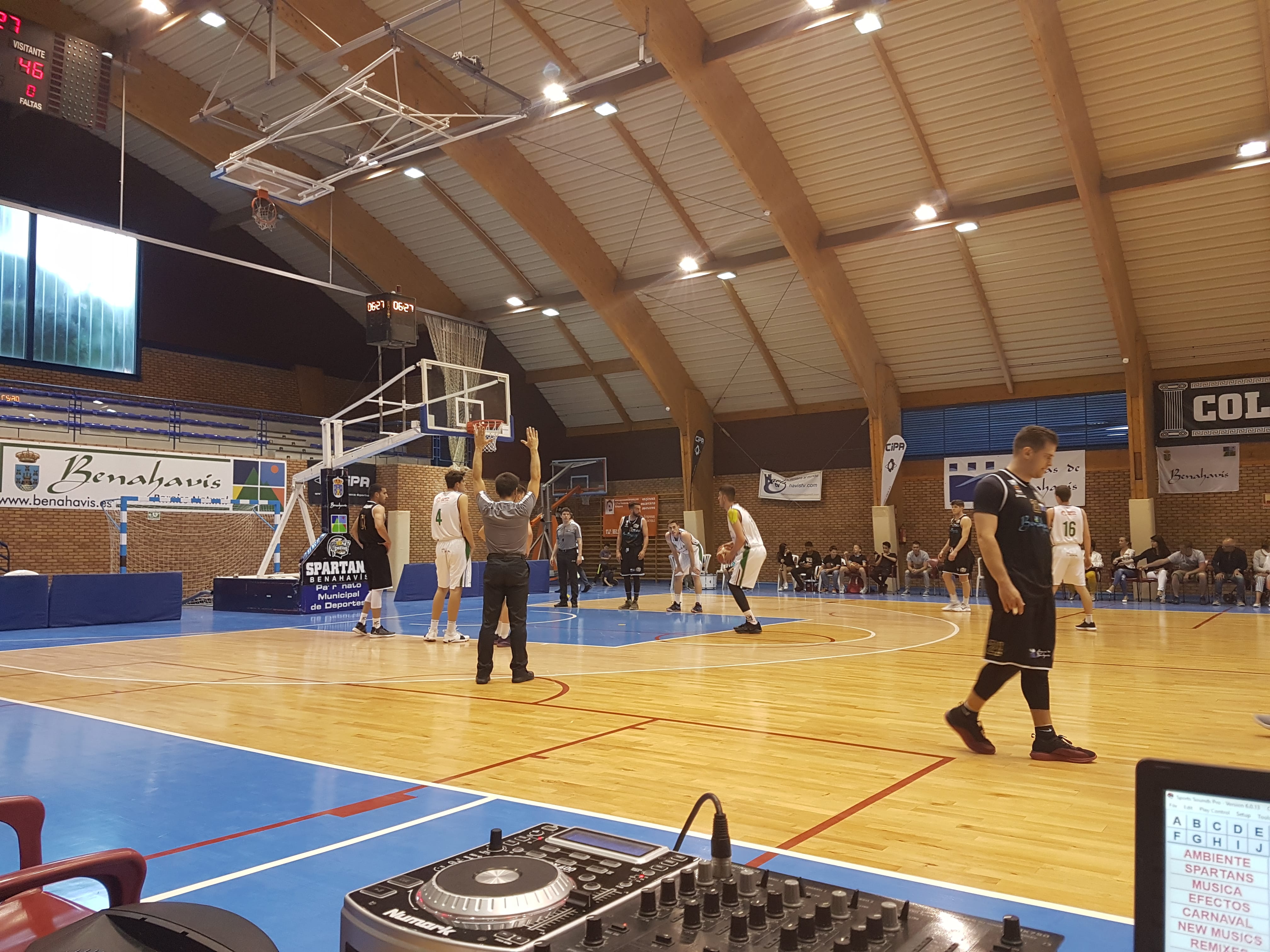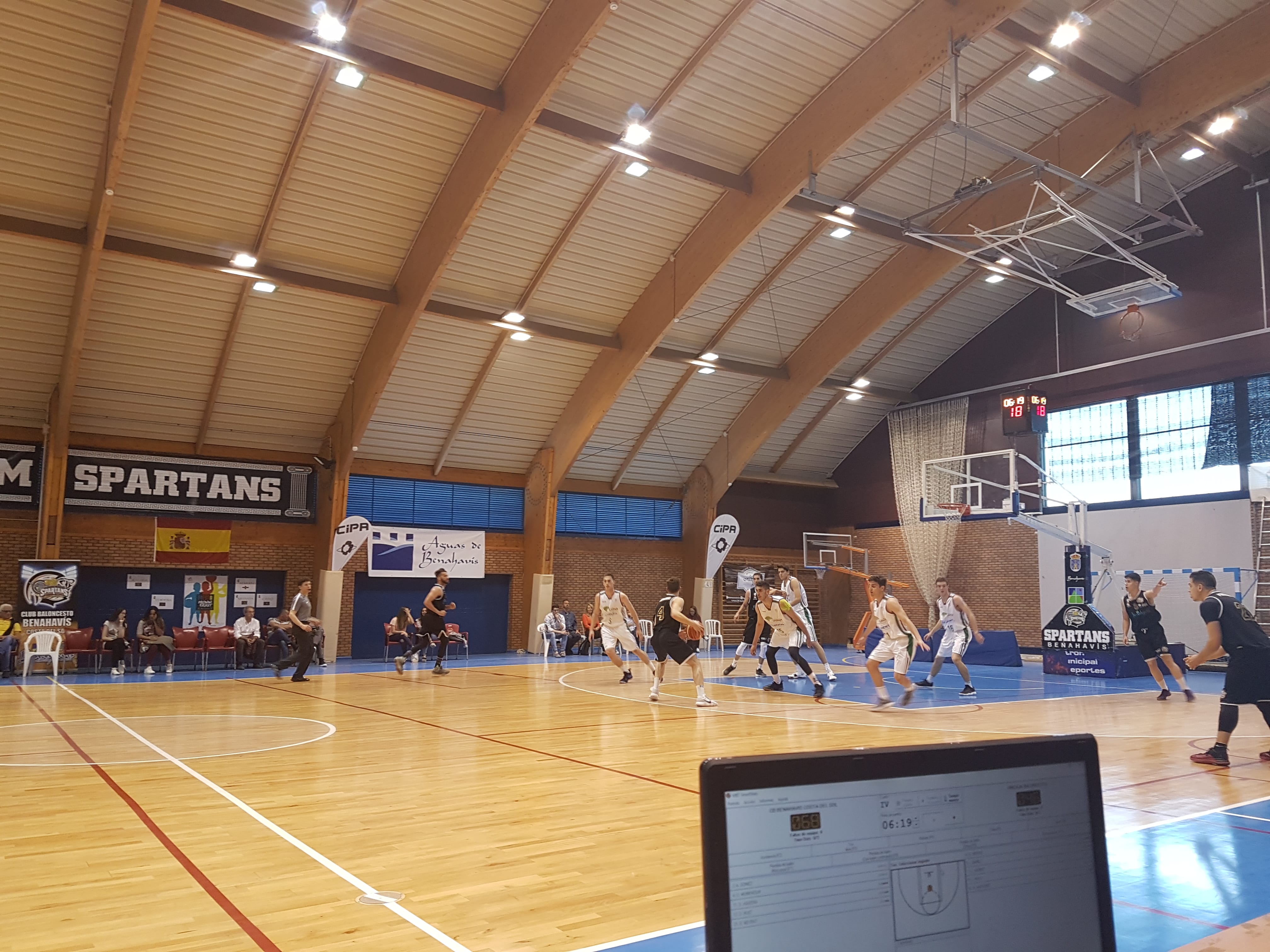 1º Cuarto: (27-23). Gran inicio de partido, sobre todo en la anotación de ambos equipos, más centrados en los ataques que en las defensas, pero ofreciendo un juego muy vistoso para el numeroso público asistente que se dio cita en el Pabellón de Deportes de Benahavís, para esta última jornada de competición, con la presencia del Concejal de Deportes, Alonso Mena, y de la visita del Seleccionador Nacional de Baloncesto de España, Sergio Scariolo, cuyo hijo Alessandro evoluciona en el equipo de Unicaja de Málaga. Rápidas rotaciones de jugadores por parte visitante, con acierto desde el perímetro por los dos bandos, que disparaban el resultado en el electrónico. Los «Spartans» se llevaban el parcial, por una diferencia de 4 puntos en el marcador.