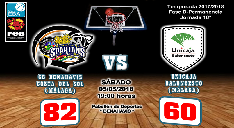 El pasado sábado 5 de mayo, a las 19:00 horas, se disputaba en el Pabellón de Deportes de Benahavís, la jornada 18ª de la Fase de Permanencia del grupo D de la Liga EBA, que enfrentaban al CB Benahavis Costa del Sol, y al equipo malagueño del Unicaja Baloncesto. El público asistente pudo disfrutar de un gran encuentro de Baloncesto entre dos equipos que ya habían certificado su Permanencia en la categoría EBA la jornada anterior.