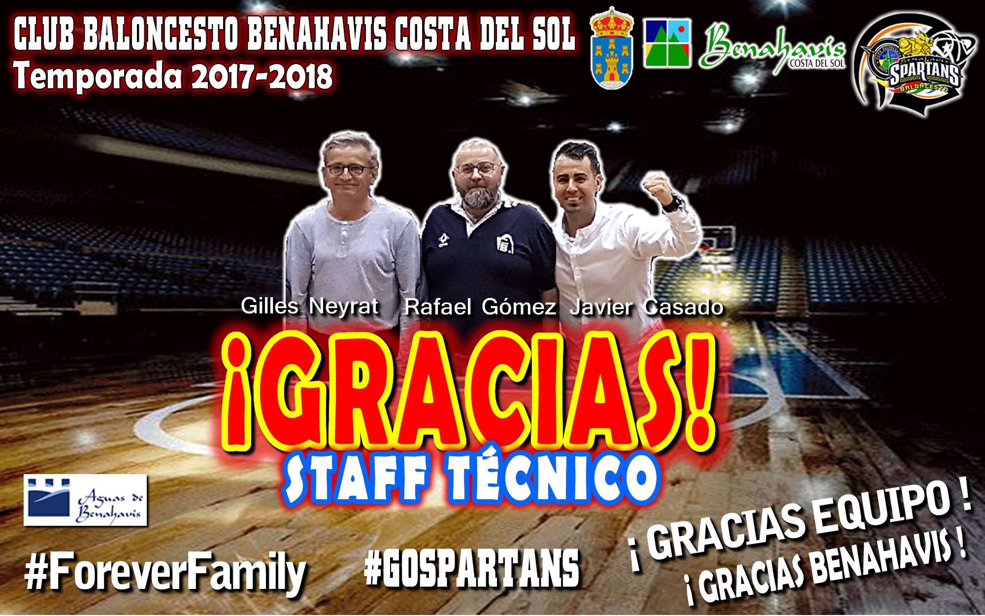 Nuestro agradecimiento al Staff Técnico del CB Benahavís Costa del Sol formado por Rafael Gómez, Gilles Neyrat y Javier Casado, por el gran trabajo realizado durante la Temporada 2017/2018, y haber conseguido la Permanencia en la Categoría EBA.
