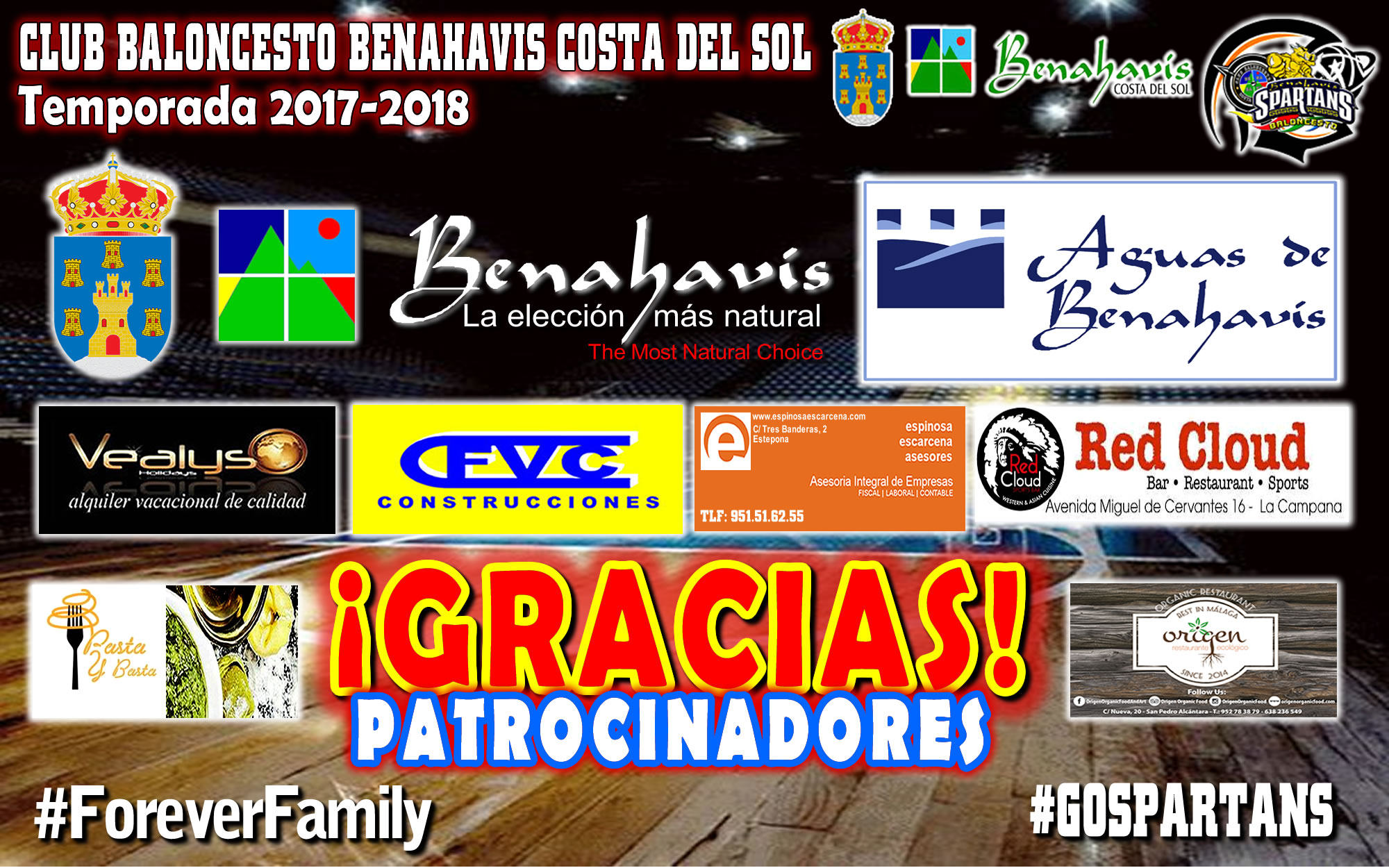 Agradecimientos a los Patrocinadores del CB BENAHAVIS COSTA DEL SOL 2017/2018