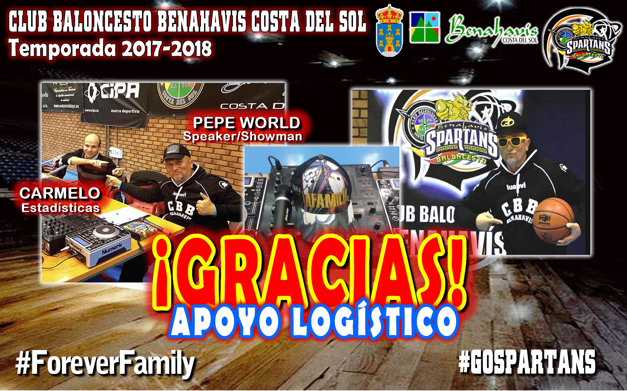 PEPE WORLD: Con su gran profesionalidad como Speaker y Animador Internacional, que lleva desde el principio en este Proyecto Deportivo y Social, hace que cada partido sea especial, empujando a los jugadores a dar lo máximo sobre la cancha, y provocando el aliento de los espectadores que se dan cita a los partidos para apoyar al equipo, a los «Spartans» de Benahavís. Siempre amable, siempre sonriente, siempre positivo, y parte del ALMA de esta GRAN FAMILIA, que es el Club Baloncesto Benahavís Costa del Sol.