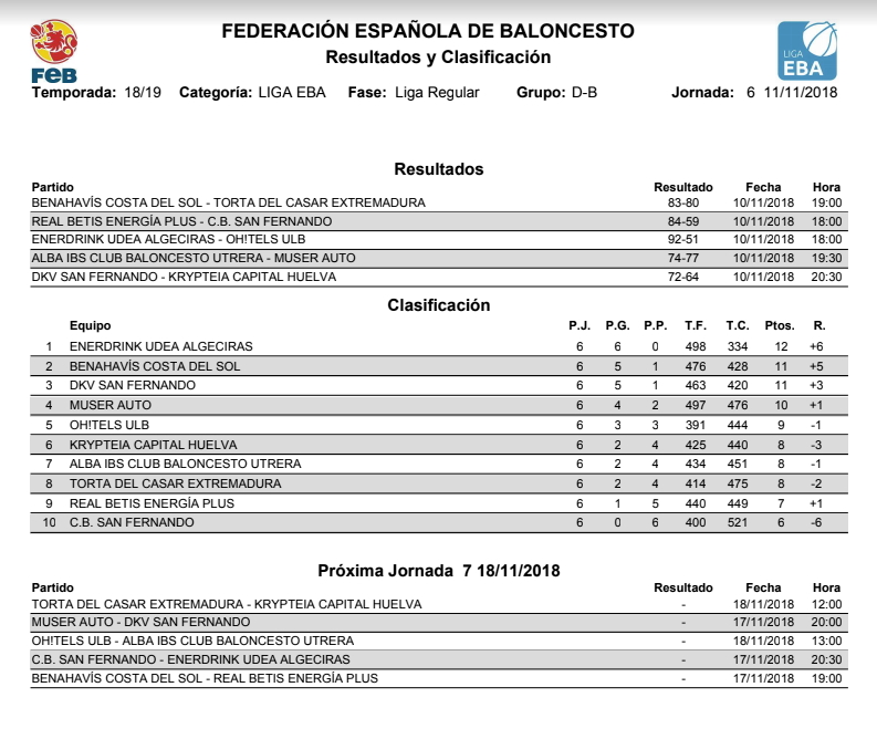 PREVIA | EBA (D-B) 18/19 | J-6ª > CB Benahavís Costa del Sol vs Torta del Casar Extremadura