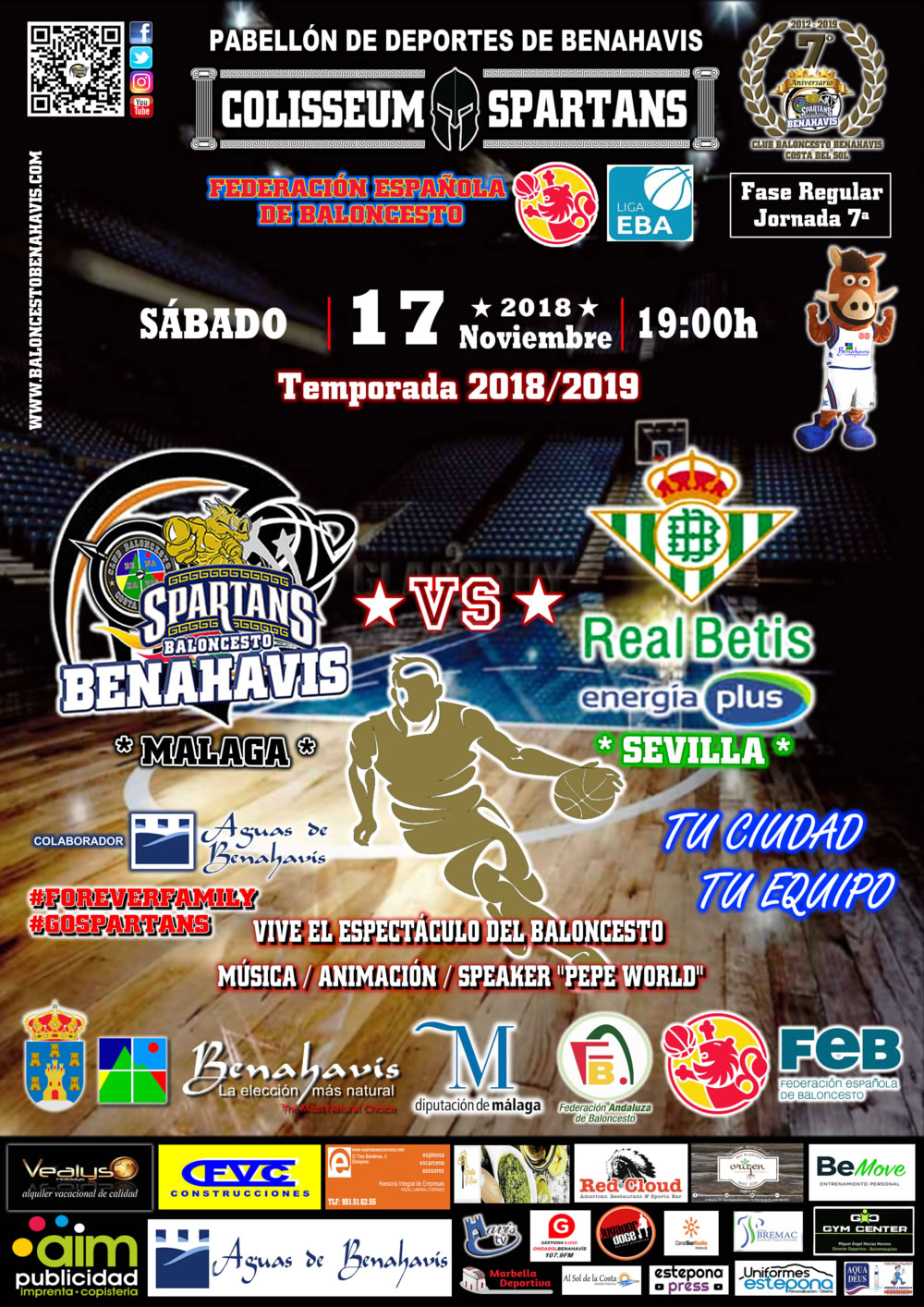 El encuentro de esta 7ª jornada de Liga EBA (D-B) se disputará en el Pabellón Municipal de Deportes de Benahavís (Avda. de Las Margaritas, s/n), el “COLISSEUM SPARTANS“, este próximo sábado 17 de Noviembre 2018, a las 19:00 horas, con ENTRADA GRATUITA para todos los asistentes.
