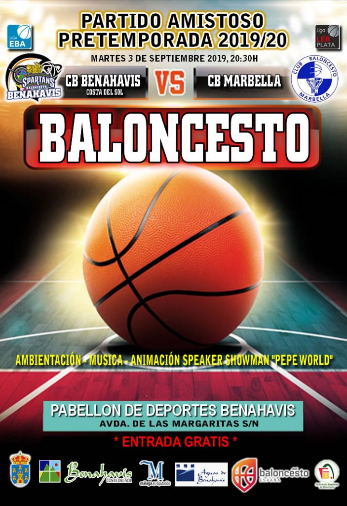El equipo de la vecina localidad de Marbella, que compite esta temporada en LEB Plata será el primer rival de la pretemporada 2019/20 del equipo de Benahavís; ambos conjuntos aun en pleno proceso de preparación, aunque el equipo visitante lleva ya un par de semanas más entrenando, debido a que su campeonato empieza el 21 de septiembre, dos semanas antes que el campeonato EBA, que empieza el 5 de octubre.