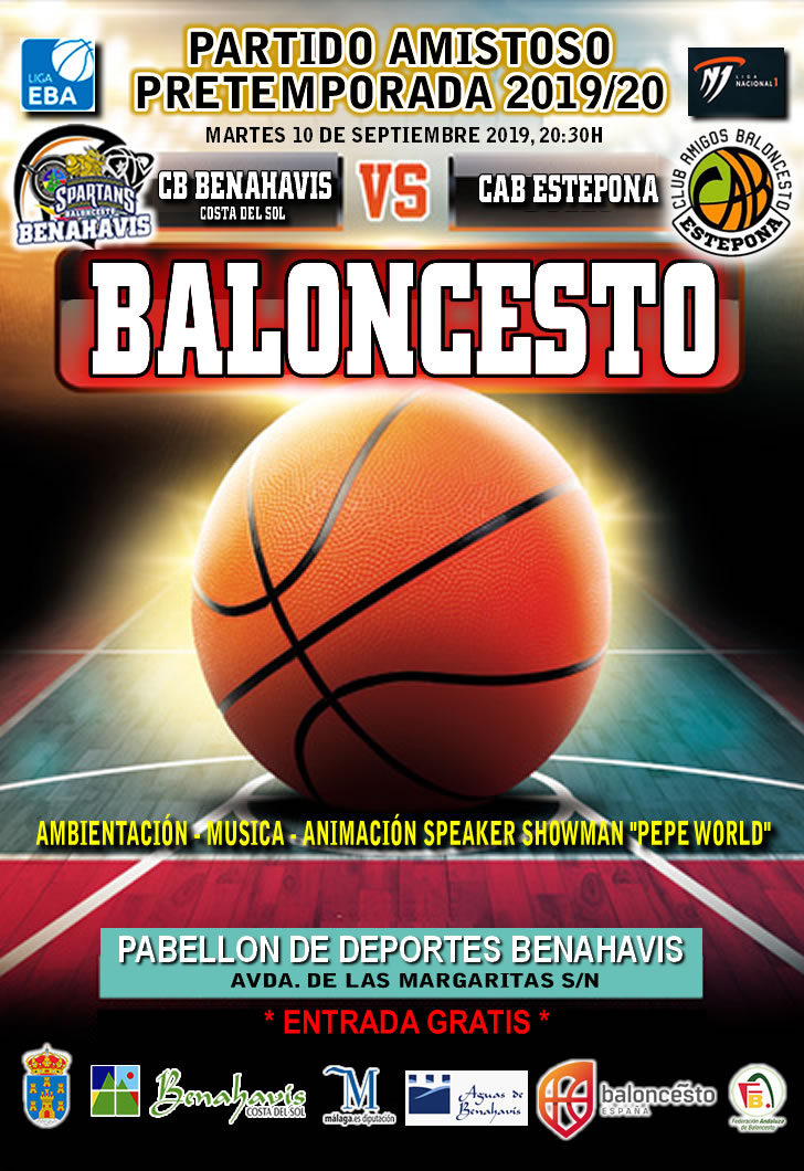 El próximo martes 10 de septiembre 2019, a partir de las 20:30h, en el Pabellón de Benahavís “Colisseum Spartans”, el CB Benahavís se enfrentará al conjunto del CAB Estepona, que competirá en la Liga Nacional N1.