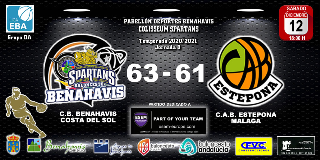 El choque estuvo en todo momento muy igualado, cualquiera de los dos equipos pudo ganar, pero la balanza se inclinaba esta vez del lado local, donde los de Benahavís conseguian la victoria, la 3ª de la temporada 20/21, por 63 a 61, en los ultimos segundos.
