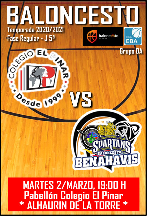 El primer partido, será el de vuelta, «Derbi Provincial», en el pabellón del Colegio El Pinar, el próximo martes 2 de marzo 2021, para disputar la Jornada 5ª de Liga EBA Grupo D-A, a partir de las 19:00 horas, frente al equipo de “COLEGIO EL PINAR», de Alhaurín de la Torre (Málaga). En el encuentro de ida los de Benahavís obtuvieron una meritoria victoria por 84 a 62, ante este equipo, que esta situado en las primeras posiciones de la clasificación.