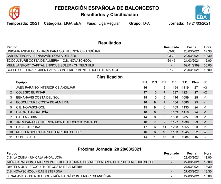 CRONICA | EBA (D-A) 20/21 | J-19ª > CAB Estepona vs CB Benahavís Costa del Sol