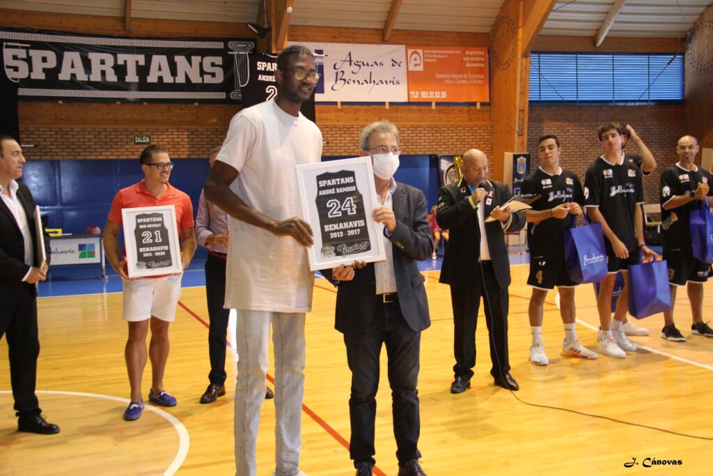 Después, se vivieron unos momentos muy emotivos con la retirada de camiseta para tres ex-jugadores de Benahavís, que han pasado al menos cinco años en el Club, en concreto para Benjamin Neyrat, para André Bamogo, y por ultimo para Javier Merás, que ademas de ver como sus números de camisetas estaban colgados del pabellón, recibían una réplica enmarcada para que el recuerdo del momento permaneza para siempre.