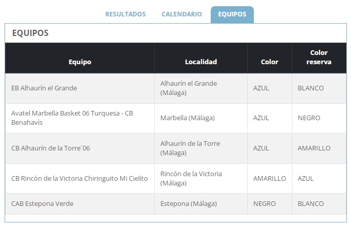 El equipo Cadete Masculino “Avatel Marbella Basket 06 Turquesa – CB Benahavís” estará encuadrado junto a los siguientes equipos: