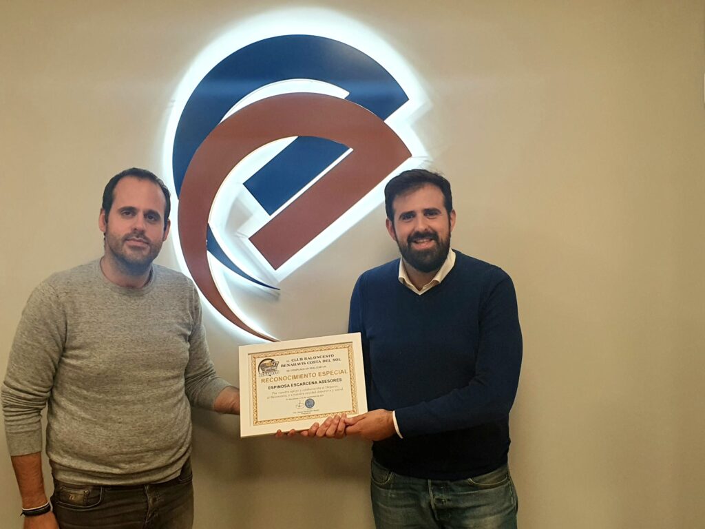 La Directiva del Club ha realizado un reconocimiento especial por el apoyo recibido todos estos años de la empresaESPINOSA ESCARCENA ASESORES de Estepona, a sus Directores, D. Antonio Espinosa Escarcena y D, Juan Manuel Espinosa Escarcena.