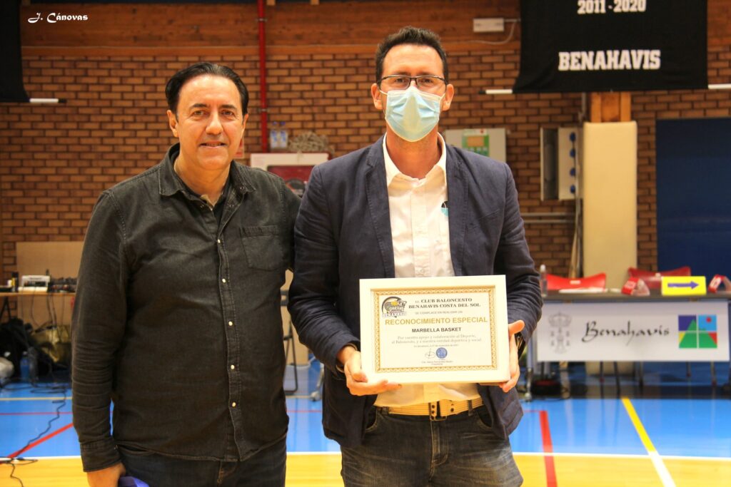Al finalizar el encuentro, con los presidentes de ambas entidades, Alexis Fernandes Bazan, por parte del CB Benahavis Costa del Sol, y Alejandro Rodriguez, por parte del Avatel Marbella Basket, que tiene dos equipos vinculados con la entidad benahavileña, Cadete y Junior Masculino, se realizaba la presentación del equipo Cadete, luego el equipo de Liga EBA, con Pepe World como maestro de ceremonia, y a continuación se hacia entrega de un Reconocimiento Especial al presidente de la entidad marbellí, unión de tres Clubs, con 800 licencias y 29 equipos.