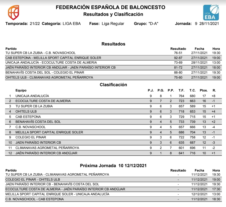 🚨⛹🏀 CRÓNICA | EBA (D-A) T21/22 | J-9ª | CB BENAHAVÍS COSTA DEL SOL vs COLEGIO EL PINAR (MÁLAGA)