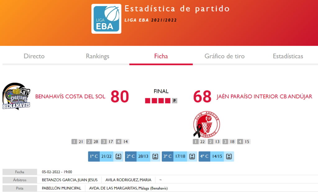 Un gran triunfo el logrado en la tarde de ayer sabado 5 de febrero 2022, por nuestros «Spartans» de Benahavis, que mostraron de nuevo su mejor versión de juego y ganaban merecidamente el encuentro de la jornada 16° de Liga EBA Temp. 21/22.
