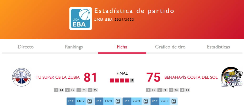 Vencer a domicilio, en la dificil cancha del 3er clasificado, Tu Super CB La Zubia, se antojaba una tarea complicada, pero el equipo de Benahavís plantó cara desde el principio a este equipo granadino, que ya disputó la pasada campaña los Playoffs por el título, y la Fase de Ascenso a Leb Plata. Con casi todo el encuentro controlado en cada cuarto, 1º (14-17), 2º (17-21), 3º (25-24), nuestro equipo llegaba incluso con una ventaja de 11 puntos a 5 minutos del final del encuentro.