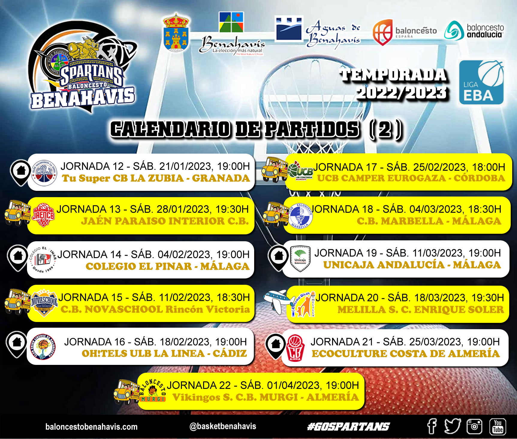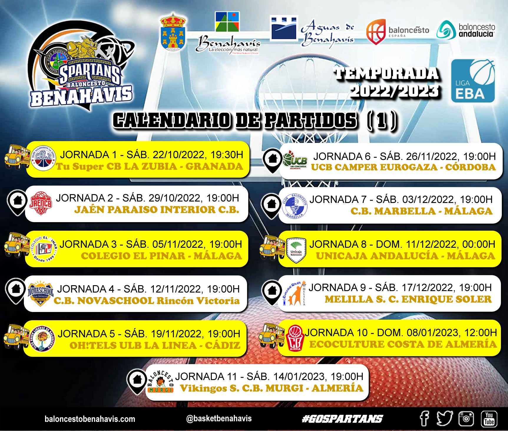 El equipo de los «Spartans» de Benahavís, perteneciente al Grupo DA, iniciará su andadura esta temporada a domicilio, Jornada 1ª, viajando a la ciudad de La Zubia (Granada), frente al conjunto de TU SUPER CB LA ZUBIA, el sábado 22 de octubre de 2022, a las 19:30h, en el pabellón «11 de Marzo» de dicha localidad granadina.